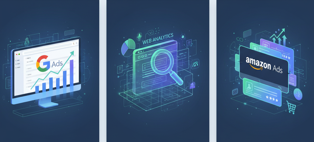 Discover how our comprehensive digital marketing services, including web analytics setup, Google Ads PPC, and Amazon Ads PPC, can help your business reach the right audience, increase conversions, and maximize ROI. With expert strategies tailored to your goals, we ensure measurable results and sustainable online growth. Click below to learn more about how we can transform your digital presence effectively.